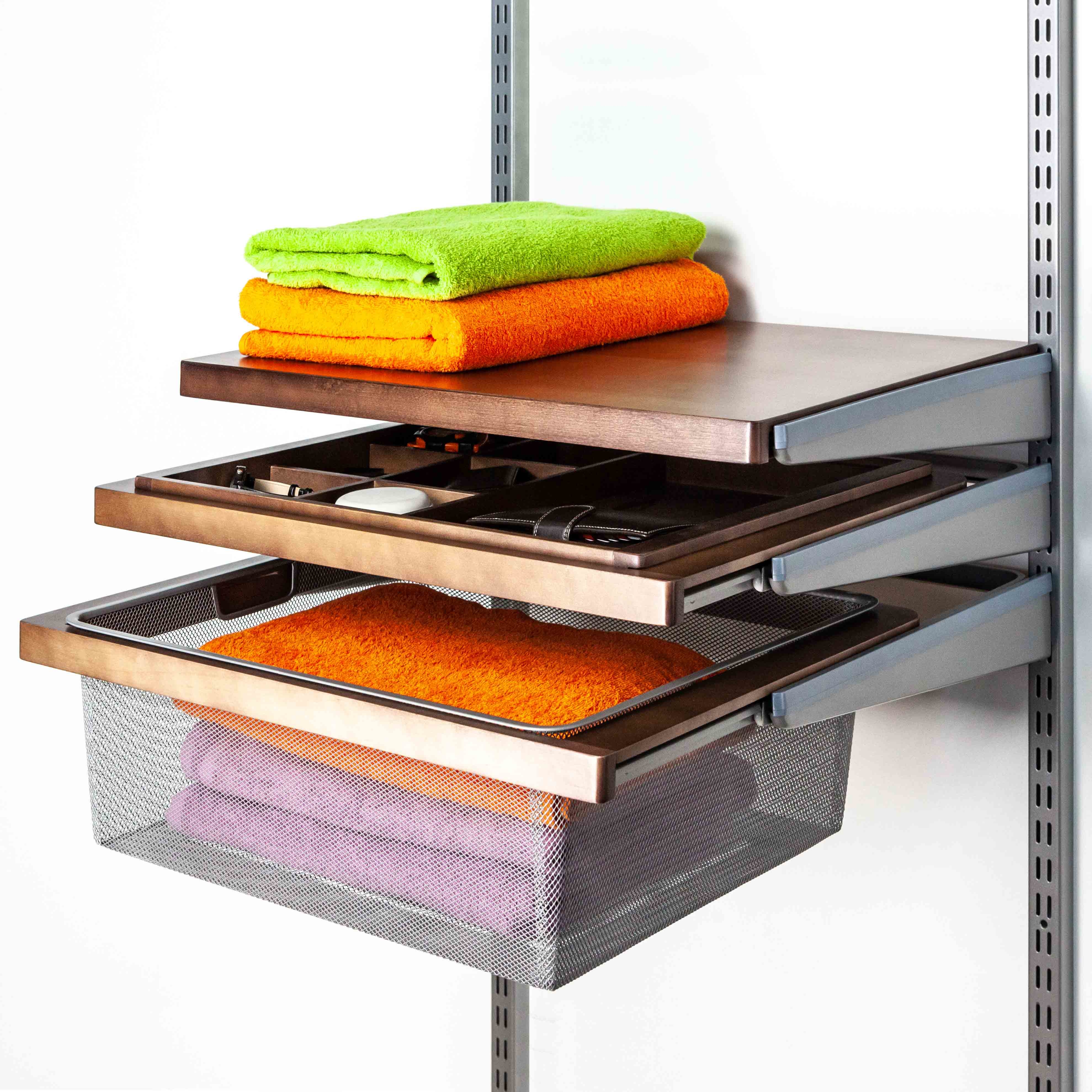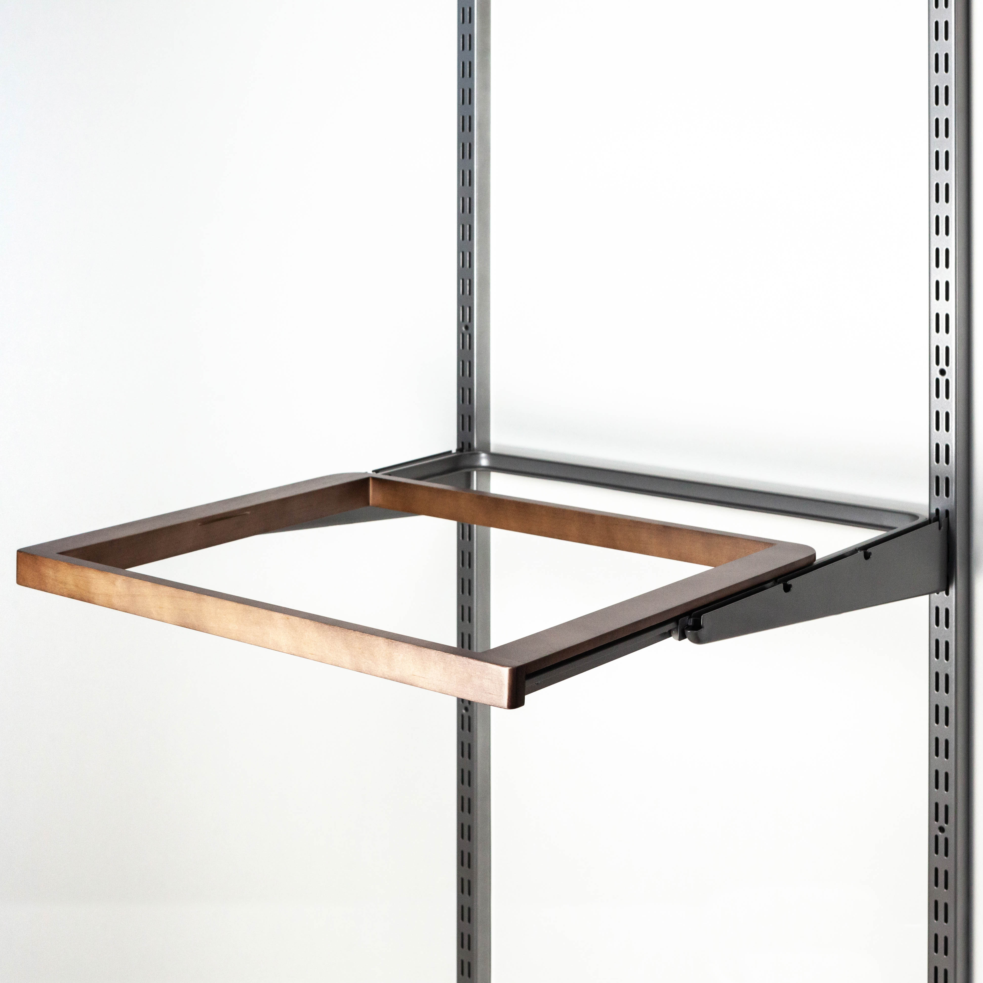 Рамка выдвижная деревянная для гардеробной системы Gardie. Устанавливается в кронштейны 420мм. Для корректной работы выдвижного механизма требуется расстояние 575мм между вертикальными направляющими. Необходима для установки мелкосетчатых корзин. Изготовлена из стали и массива берёзы, выдвижной механизм осуществляется с помощью ролика с подшипниками. В сочетании с другими элементами из массива, такие как декоративные планки для проволочной полки и полки - внешний вид системы меняется кардинальным образом. С такими элементами ваша гардеробная комната будет значительно более эксклюзивная и уютная. А значит, там всегда будет порядок, так как такую гардеробную комнату хочется показать каждому гостю. Полка изготовлена из натурального массива березы.