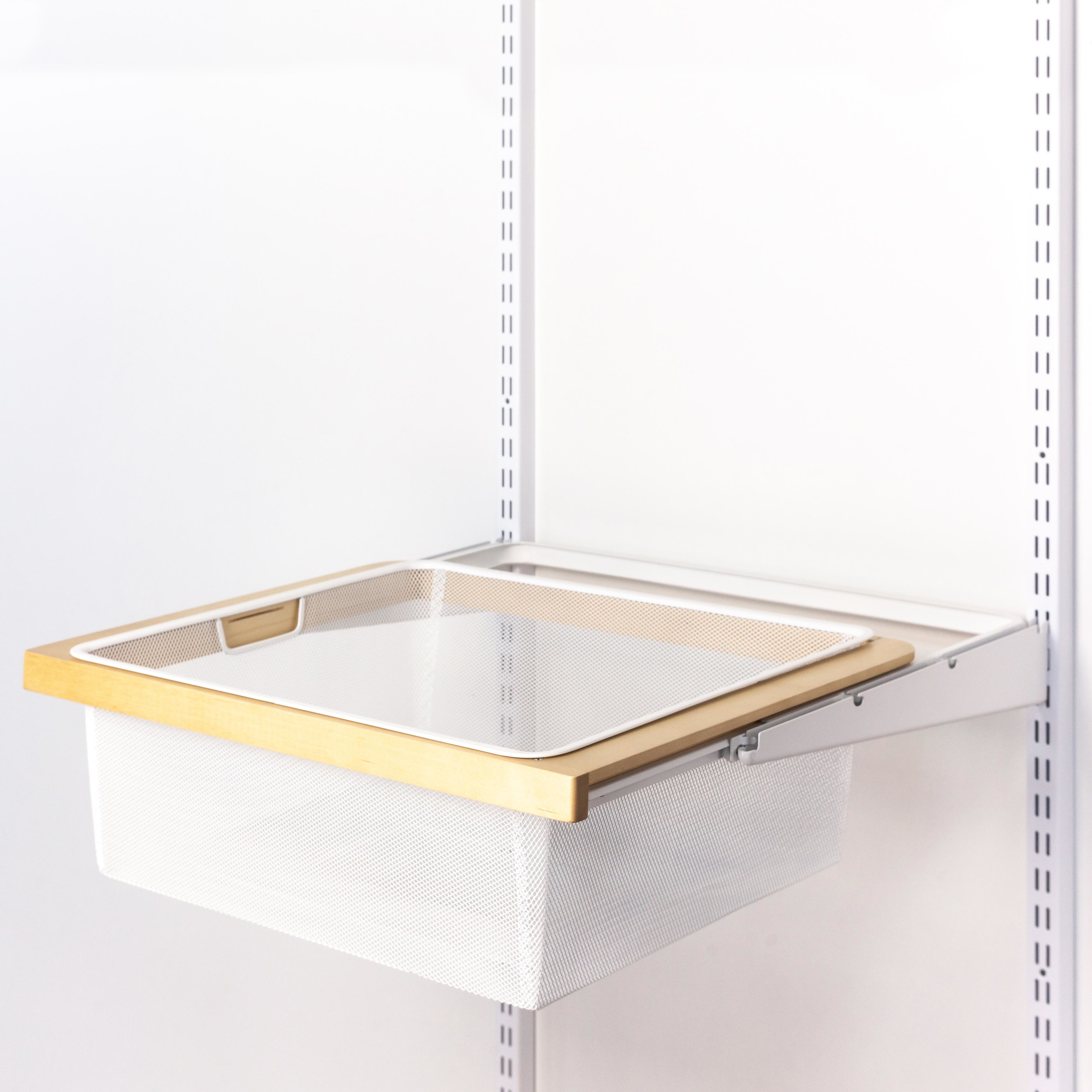 Мелкосетчатая корзина глубиной 185мм. Устанавливается в выдвижную деревянную Gardie рамку без дополнительных элементов. Огромное преимущество таких корзин в том, что одежда в них не "задыхается" и на дне корзины не скапливается мелкая пыль. Корзина полупрозрачная, благодаря мелким ячейкам сетки. Вы всегда будете видеть, есть ли вещи в корзине, но кроме вас никто не будет видеть, что именно в корзине лежит. Изготавливаются из металла. Изделие может иметь незначительные отличия от фото.
