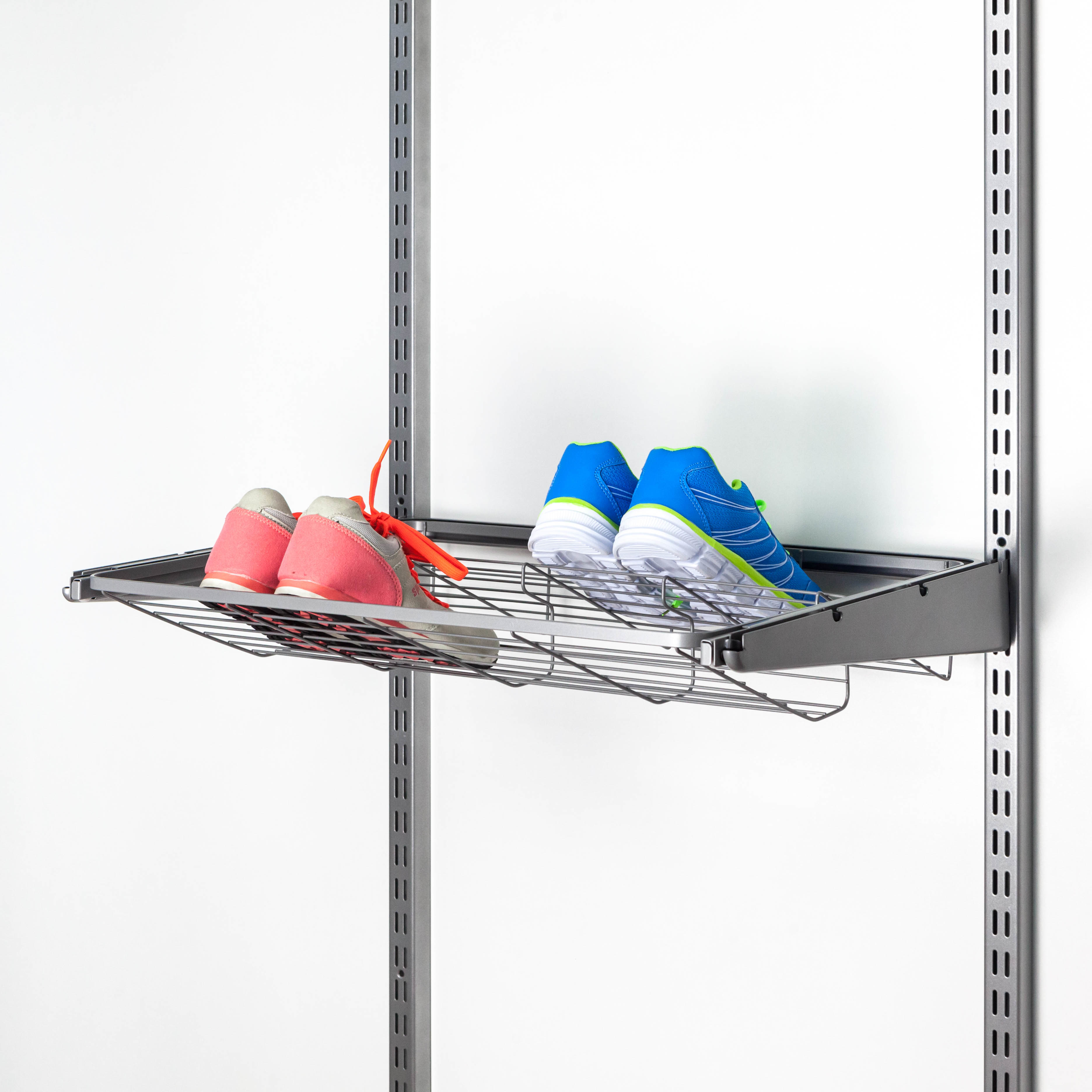 Выдвижная металлическая обувница для системы хранения Gardie. Устанавливается в кронштейны 420мм, дополнительные элементы для установки не требуются. Выдвижной механизм реализован с помощью роликов. Для корректной работы выдвижного механизма требуется расстояние 575мм между вертикальными направляющими. Обувница предназначена для хранения практически любой обуви в отрытом виде, за исключением дамских туфель с каблуком. Для такой обуви применяются навесные обувницы. Хранение обуви в открытом виде позволяет обуви проветриваться.