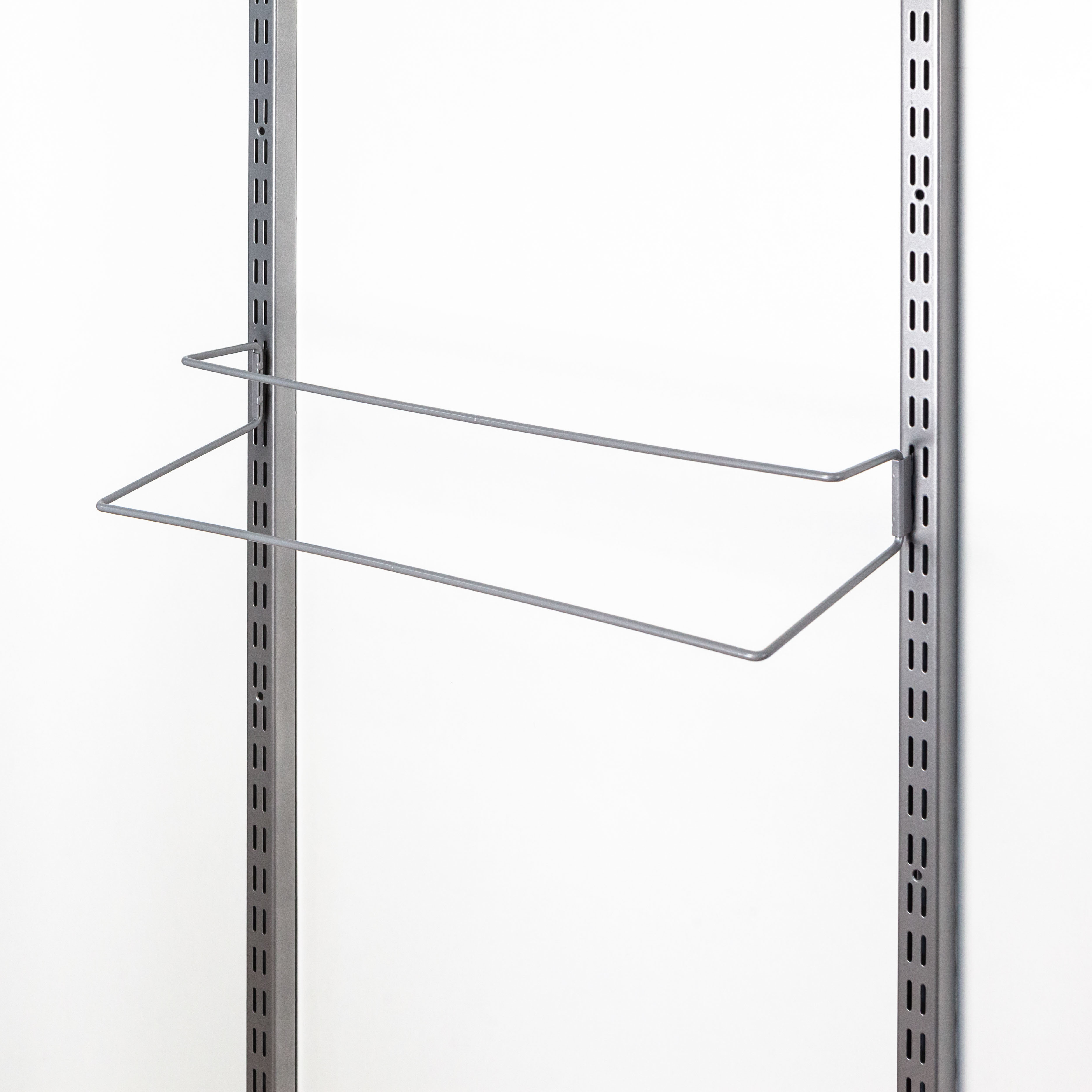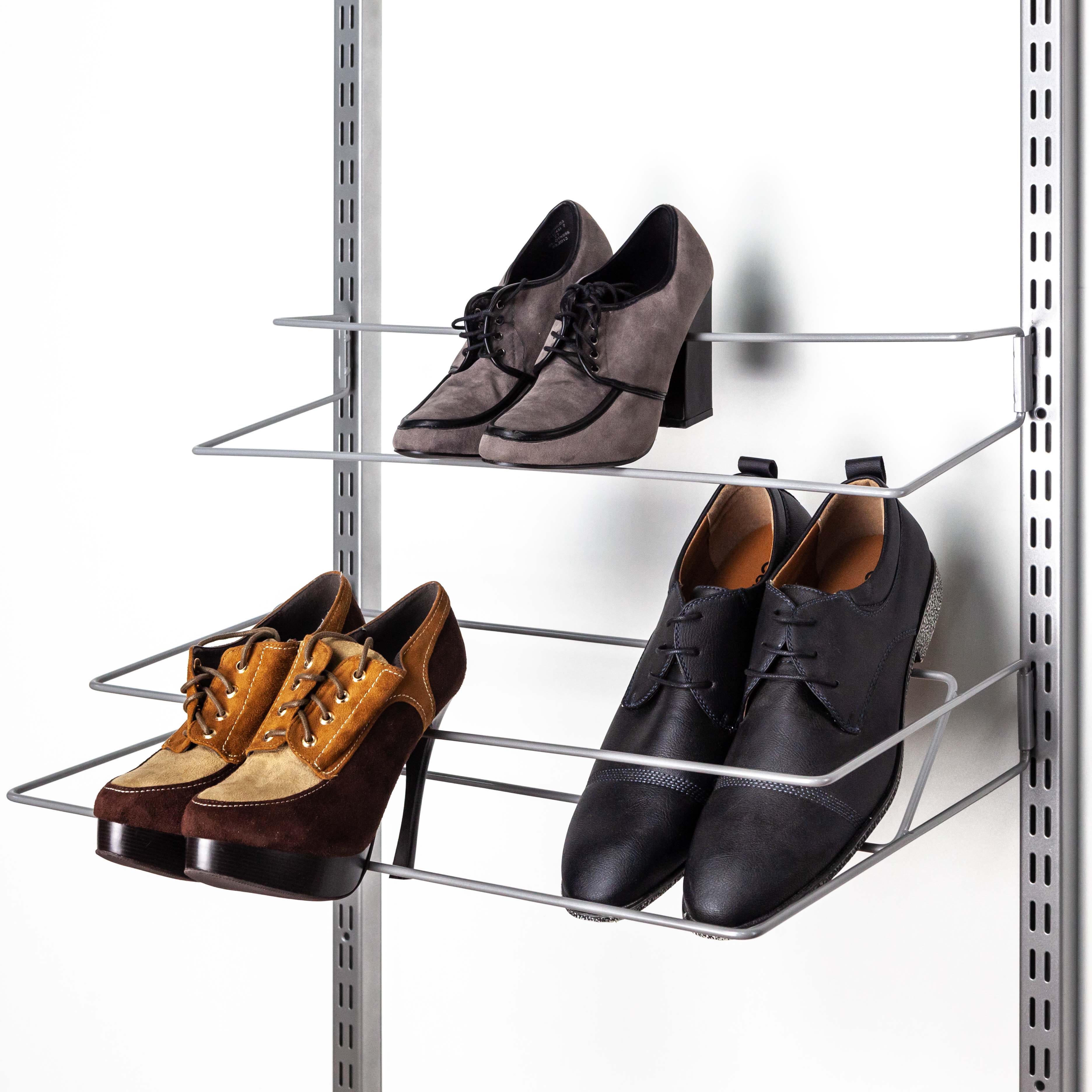 Проволочная одноярусная навесная обувница. Устанавливается в вертикальные направляющие Gardie. Для установки требуется расстояние 575мм между вертикальными направляющими. Подходит для хранения обуви с ярко выраженным каблуком, как женской, так и мужской. Благодаря хранению в открытом виде обувь всегда проветривается.