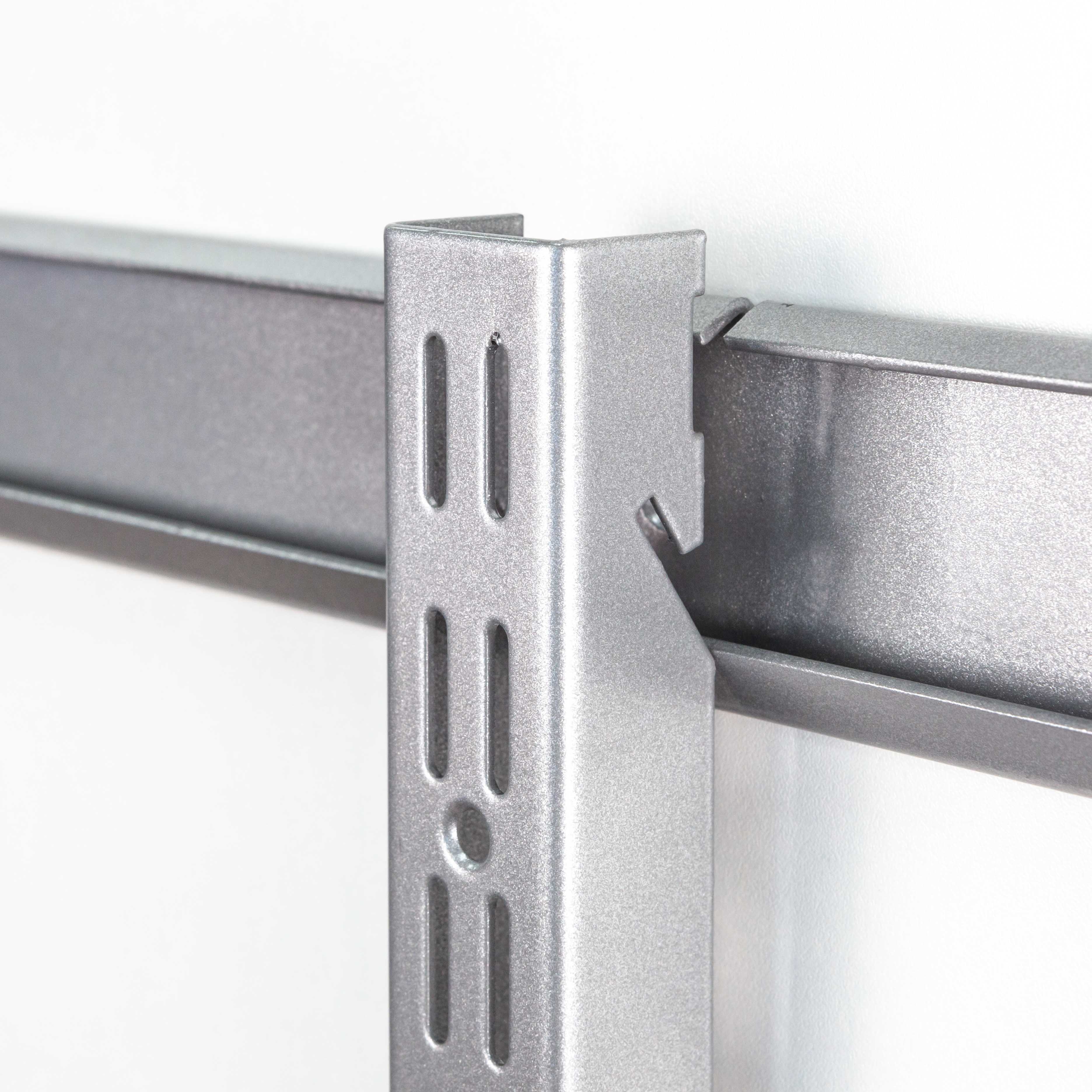 Вертикальная навесная направляющая. Каркас системы. Монтируется на стену, см. схему сборки. Служит основой навесных элементов системы хранения Gardie. Устанавливается как на несущий рельс, так и напрямую к стене. Направляющая имеет двойную перфорацию по всей длине для установки кронштейнов, полок и других элементов гардеробной системы Gardie. Изделие выполнено из стали толщиной 1,5мм. Имеет 5 крепежных отверстий. Высота 2300мм. При необходимости, элемент можно отпилить в нужный размер.