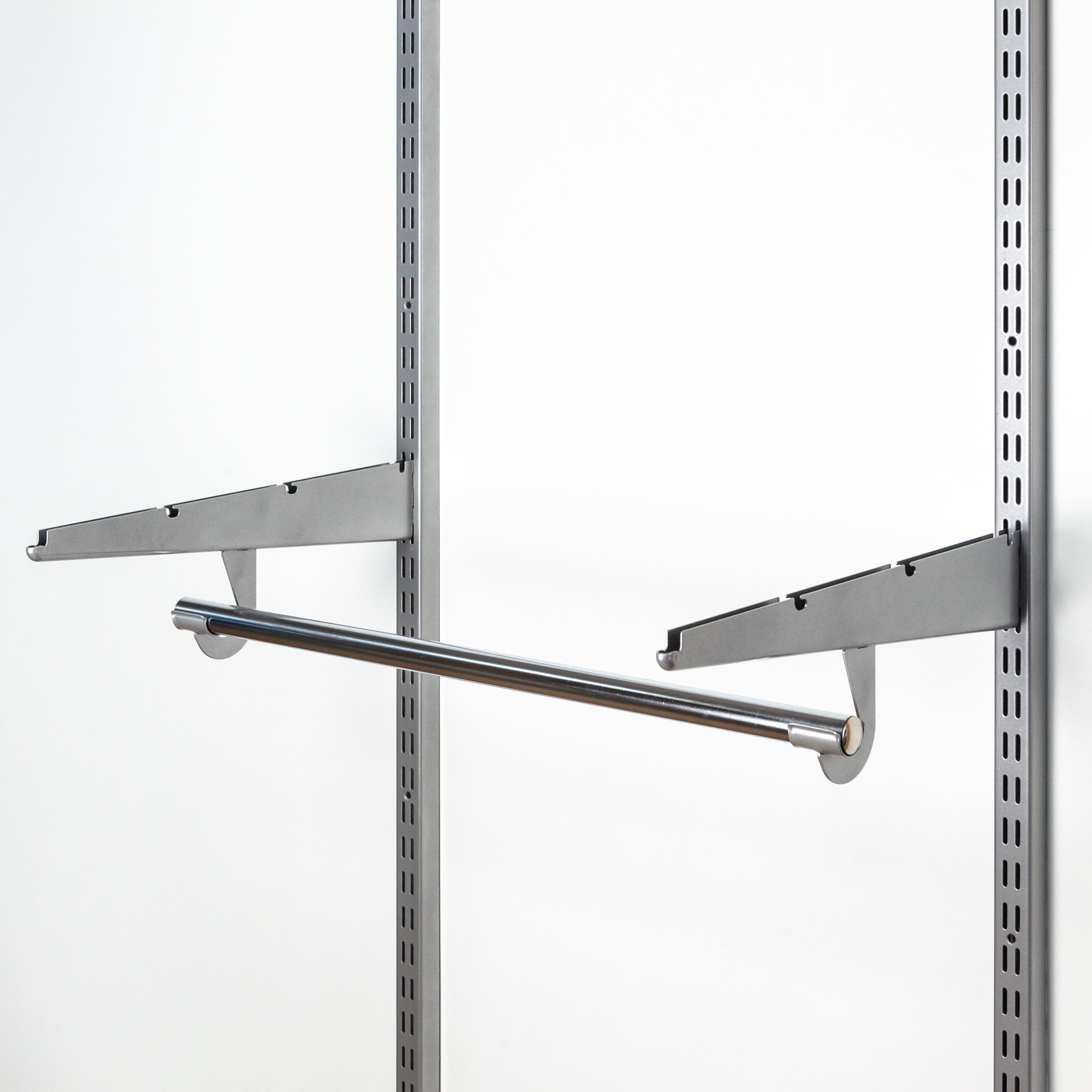Штанга L=1255мм. Длина штанги рассчитана 2 секции, в которых между направляющими 575мм. Устанавливается в специальный крючок для штанги Gardie. Предназначена для хранения одежды на вешалках-плечиках. При монтаже штангу можно отпилить в нужный размер, например, для секции шириной 900мм. Для торцов штанги нашем ассортименте предлагается хромированная заглушка штанги.