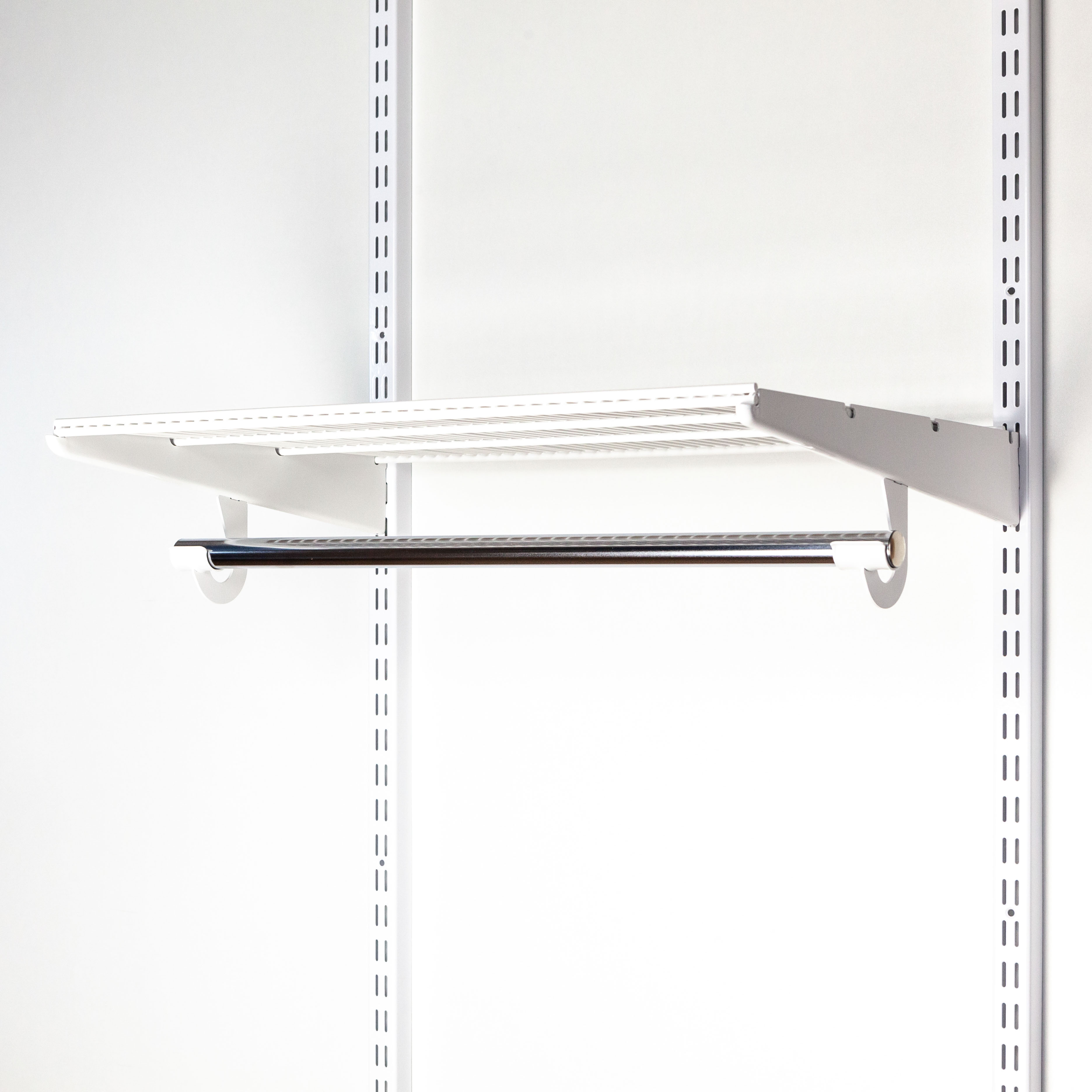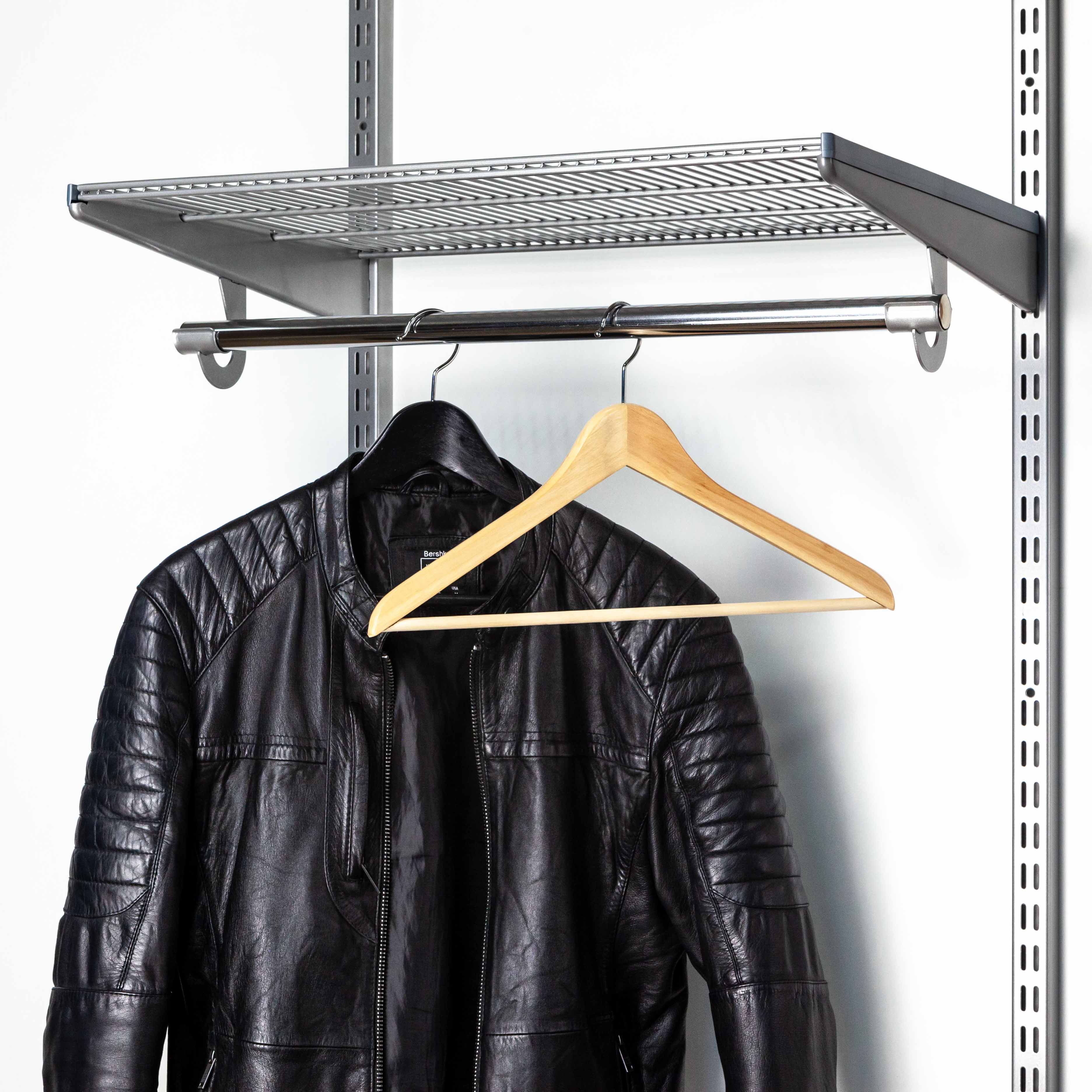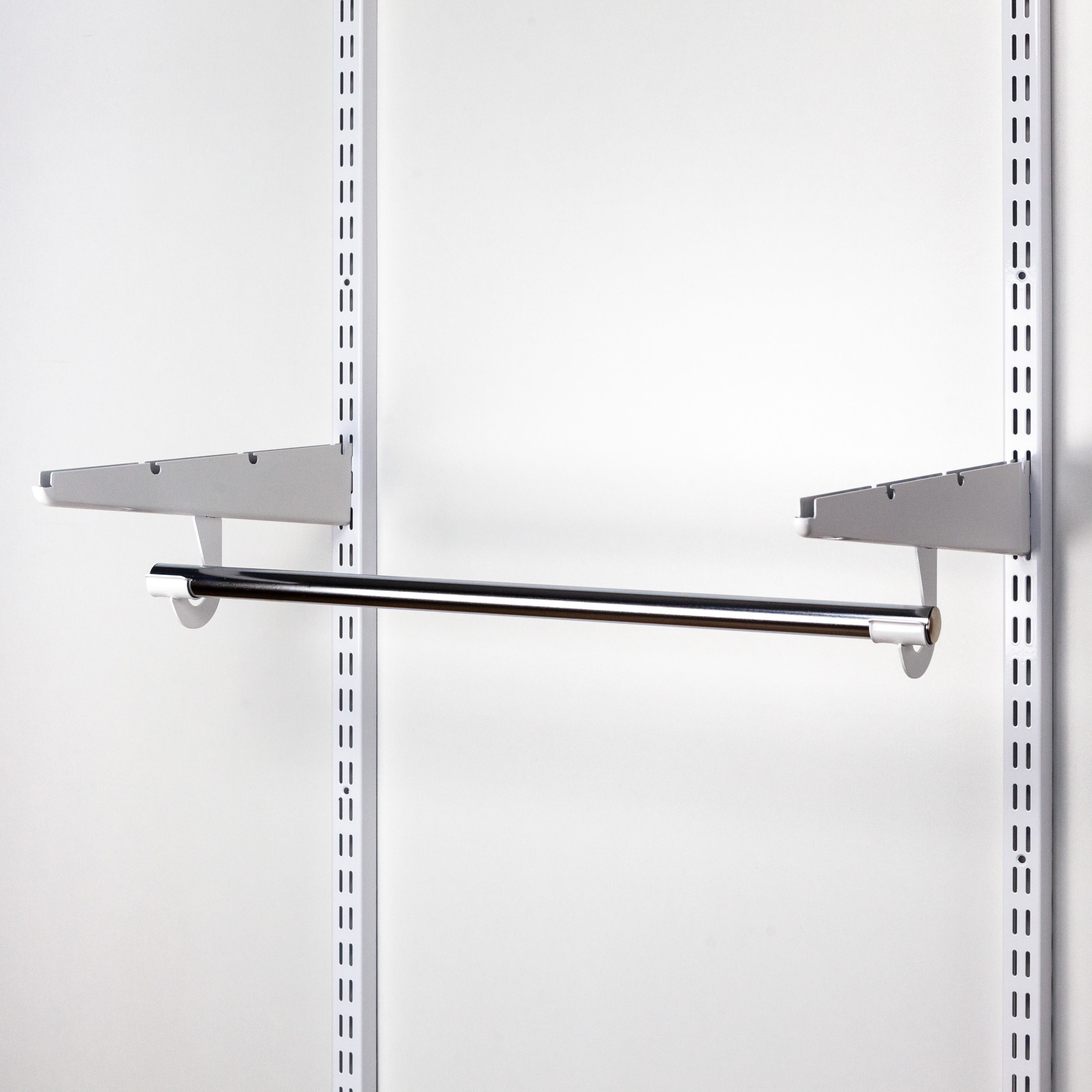 Штанга L=645мм. Длина штанги рассчитана для 1-ой секции с шагом 607мм. Устанавливается в специальный крючок для штанги Gardie. Предназначена для хранения одежды на вешалках-плечиках. При монтаже штангу можно отпилить в нужный размер, например, для секции шириной 450мм. Для торцов штанги нашем ассортименте предлагается хромированная заглушка штанги.