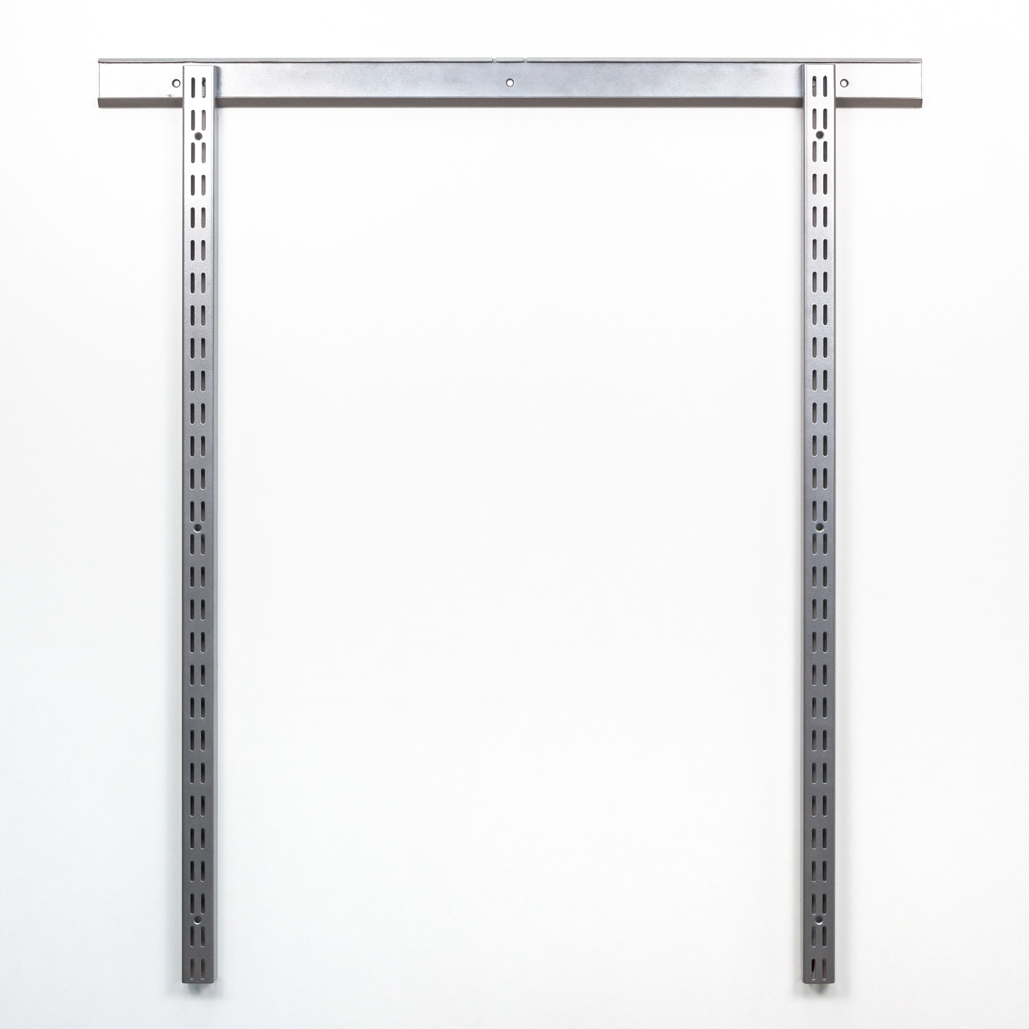 Горизонтальный несущий рельс. Каркас системы. Монтируется на стену, см. схему сборки. Предназначен для установки вертикальных навесных направляющих проволочной системы Gardie. Этот элемент облегчает монтаж гардеробной системы и повышает предельную нагрузку, за счет распределения веса. Изделие выполнено из стали толщиной 1,5мм. Имеет 7 крепежных отверстий. Длина 1950мм.