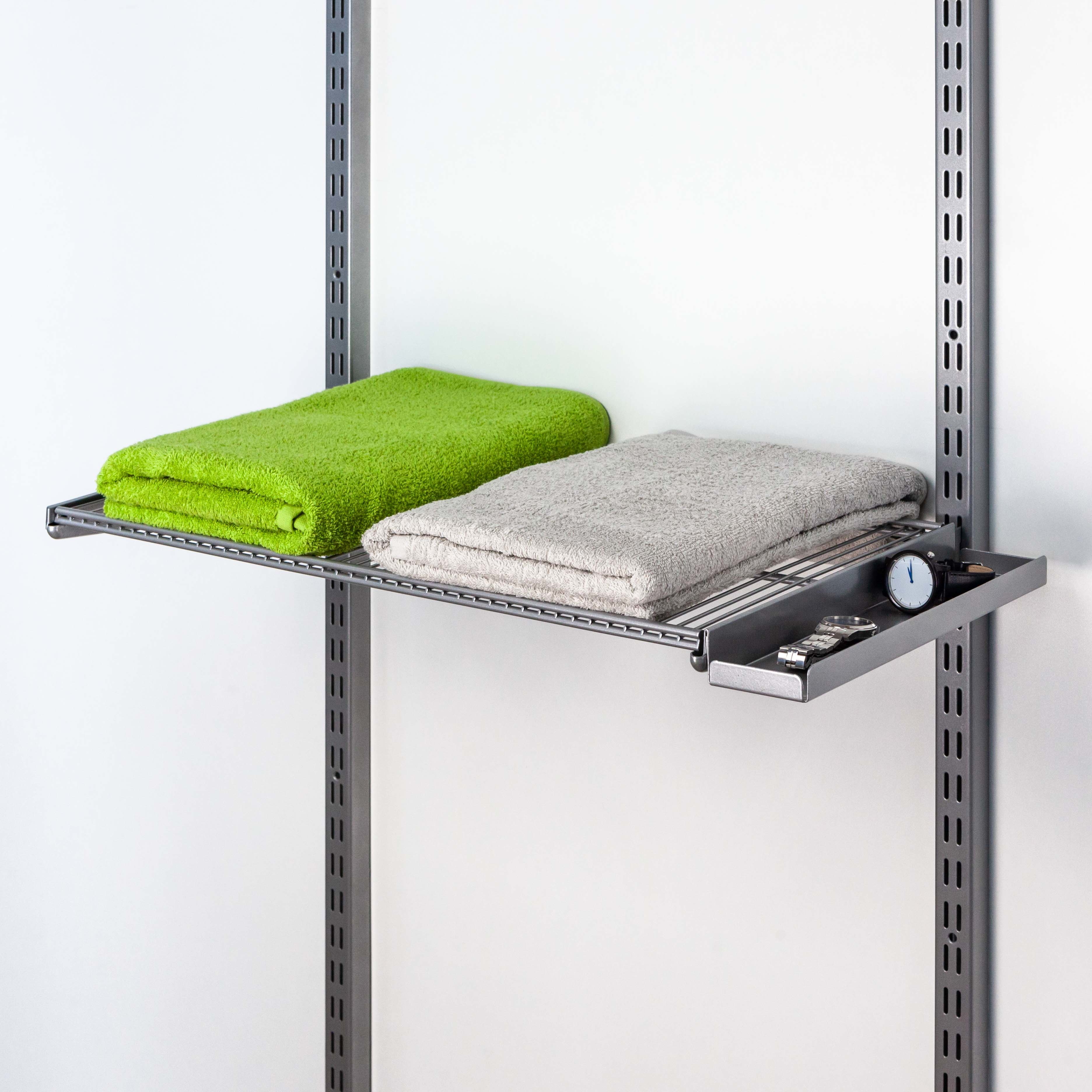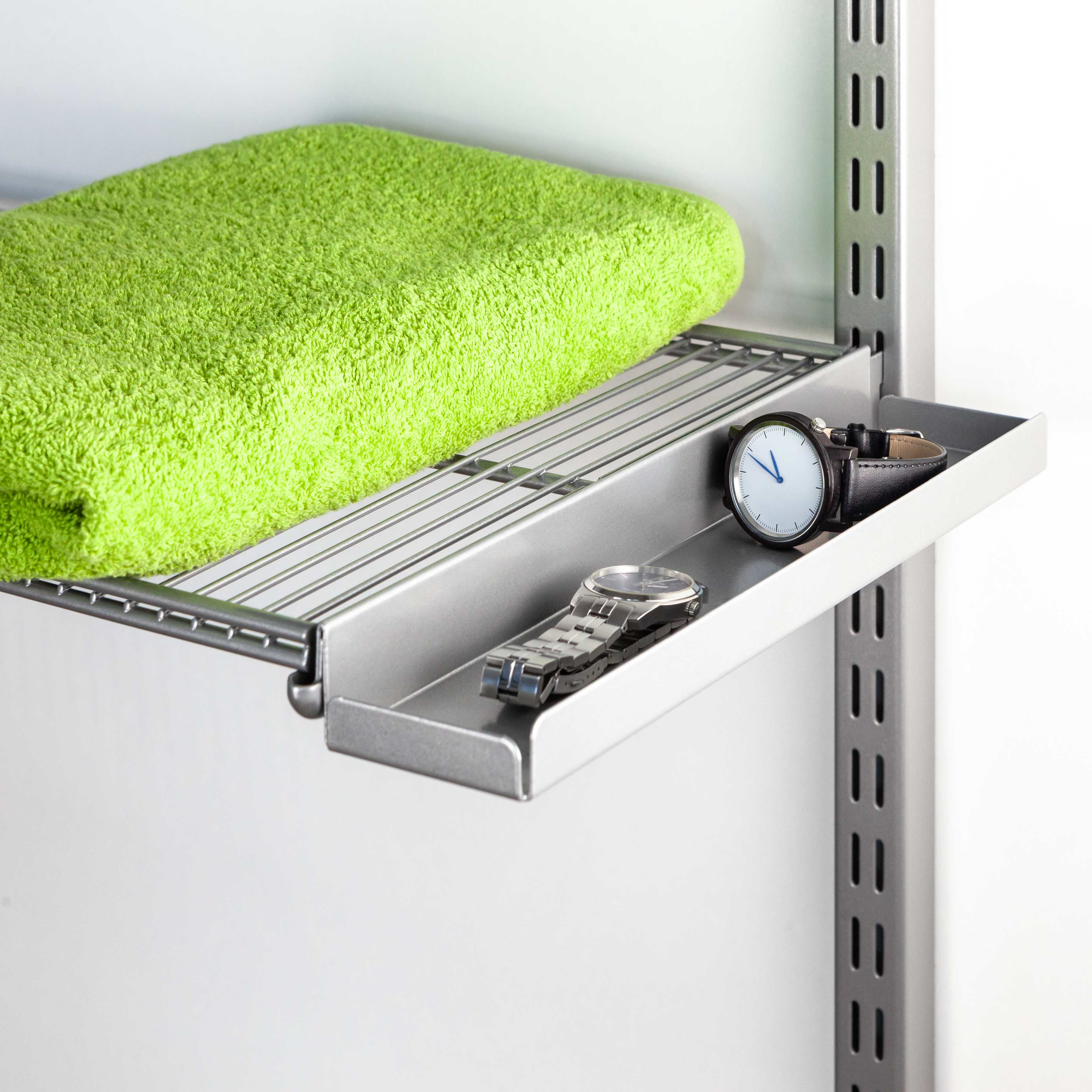 Лоток боковой 320мм. для гардеробной системы Gardie. Устанавливается на свободную сторону кронштейна 320мм., вместо декоративных заглушек кронштейна 320 лев./прав. Отлично подходит для хранения аксессуаров, мелких предметов, косметики, средства по уходу за домом, предметов по уходу за обувью и т.п. Элемент изготовлен из стали толщиной 1,2 мм с применением технологий порошкового окраса.