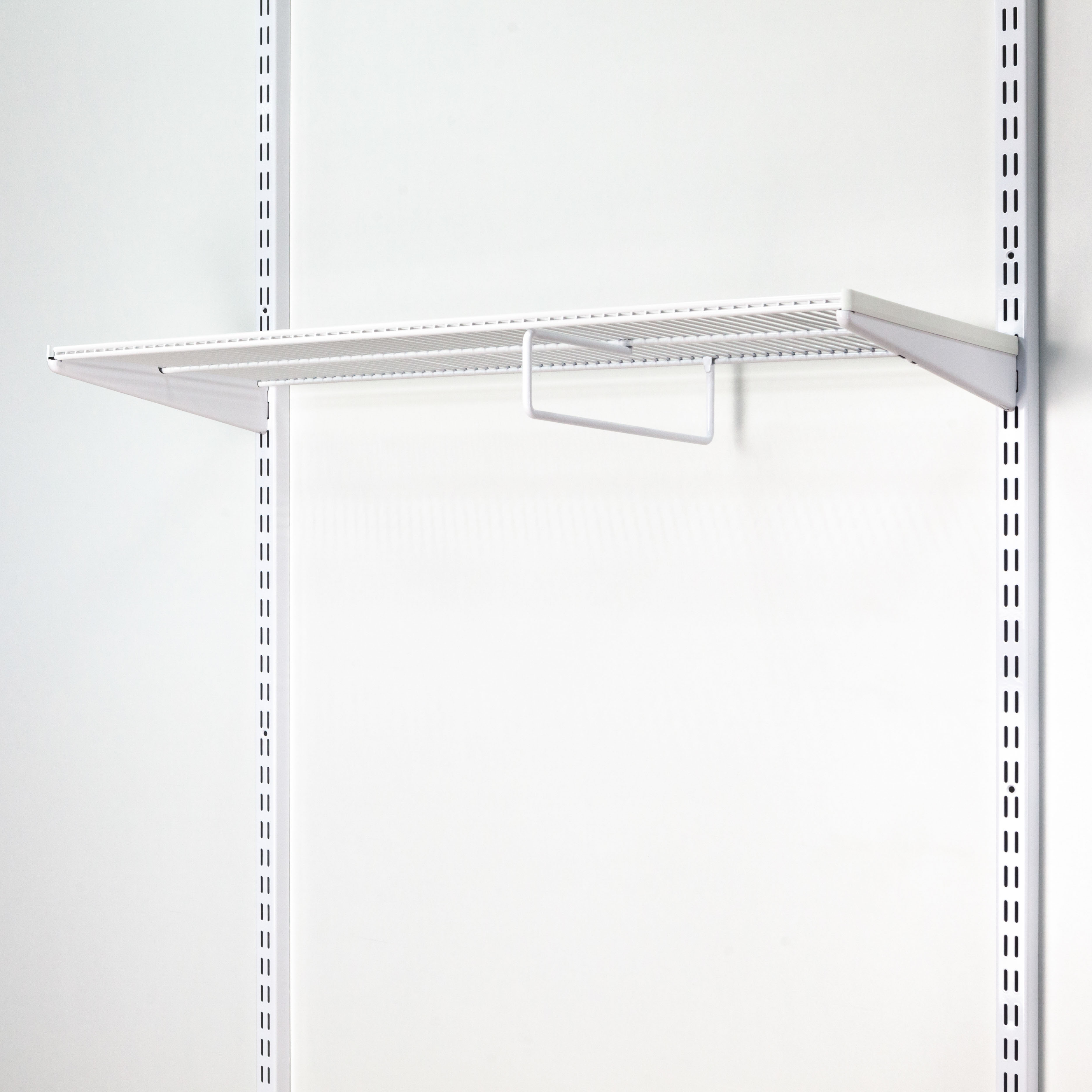 Подвес под проволочную полку 305мм. для гардеробной системы Gardie. Устанавливается под проволочные полки 305х607мм и 305х900мм. Отлично подходит для ниш, глубина которых, менее 450мм. Элемент изготовлен из стальной проволоки толщиной 6мм. Используется для хранения одежды на вешалках, зонтов.