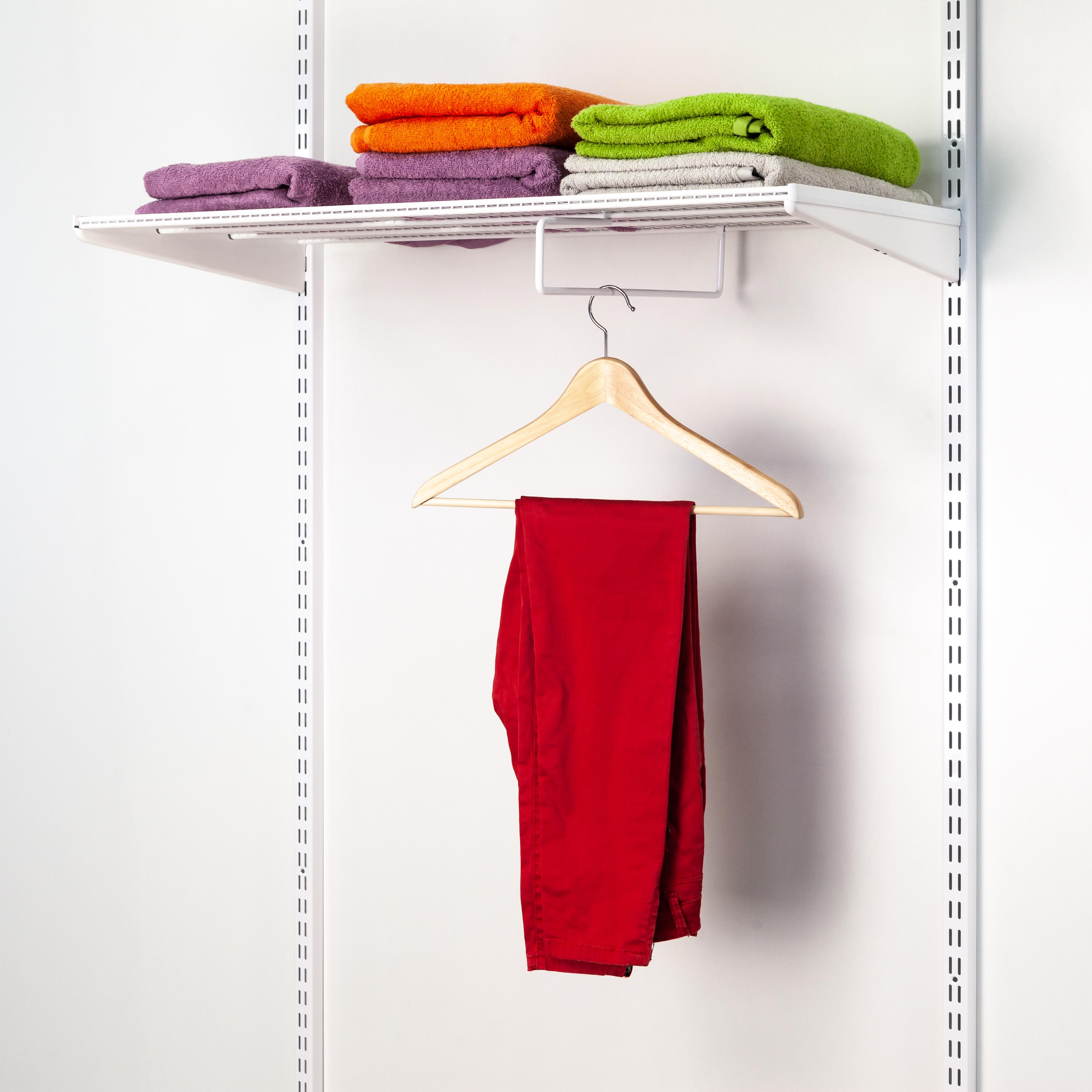 Подвес под проволочную полку 405 мм. для гардеробной системы Gardie. Устанавливается под проволочные полки 405х607мм, 405х900мм и 405х1212мм. Данный элемент может заменить штангу для одежды. Элемент изготовлен из стальной проволоки толщиной 6мм. Используется для хранения одежды на вешалках, зонтов.